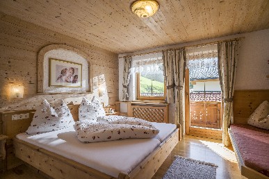 Schlafzimmer: 1 Doppelzimmer, 1 Dreibettzimmer mit Zirbenmöbel